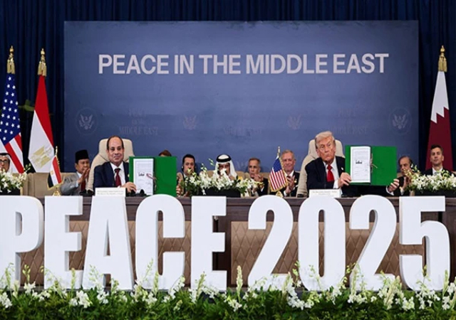مصرکے شہر شرم الشیخ میں ہونے والی تقریب میں امریکی صدر ڈونلڈ ٹرمپ ، مصر کے صدر عبدالفتاح السیسی ، ترک صدر رجب طیب اردوان اور قطر کے امیر نے ’’ غزہ امن معاہدے‘‘ پر دستخط کر دیئے ۔
