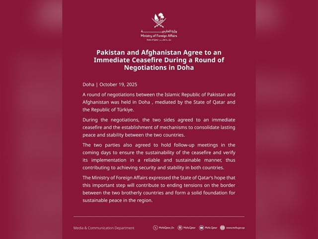 قطر کی وزارتِ خارجہ کے مطابق مذاکرات کے دوران دونوں فریقین نے نہ صرف جنگ بندی پر اتفاق کیا بلکہ دوطرفہ امن و استحکام کے لیے ایک مستقل مکینزم پر بھی رضامندی ظاہر کی۔