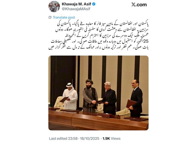 دوحہ:اسلامی جمہوریہ پاکستان اور افغانستان کے درمیان دوحہ میں ہونے والے 13 گھنٹے طویل مذاکرات کامیابی کے ساتھ مکمل ہو گئے جن کے نتیجے میں دونوں ممالک نے فوری جنگ بندی پر اتفاق کر لیا۔