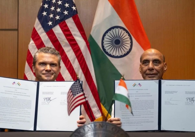 امریکا اور بھارت نے 10 سالہ دفاعی فریم ورک معاہدے پر دستخط کر دیے ہیں۔ امریکی وزیرِ دفاع پِیٹ ہیگسیتھ نے کہا ہے کہ یہ معاہدہ دونوں ممالک کے درمیان دفاعی تعاون، ٹیکنالوجی کے تبادلے اور معلومات کے اشتراک کو مزید مضبوط بنائے گا۔