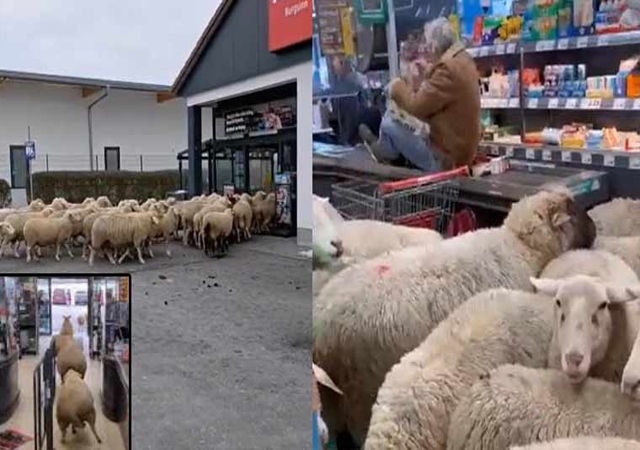 پینی سپر مارکیٹ میں بنائی گئی ویڈیو میں دیکھا جا سکتا ہے کہ درجنوں بھیڑیں مرکزی دروازے سے سٹور کے اندر داخل ہوئیں، جس کے باعث اندر افراتفری مچ گئی، بھیڑوں کی وجہ سے سٹور کے اندر نقصان ہوا اور جگہ جگہ گندگی پھیل گئی۔