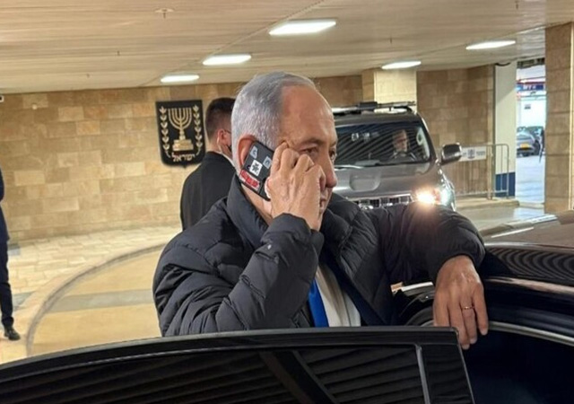 اسرائیلی پارلیمنٹ کے اندر سے سامنے آنے والی تصاویر میں بنیامین نیتن یاہو ایک آئی فون تھامے ہوئے دکھائی دیتے ہیں جس کے کیمرے ٹیپ سے ڈھکے ہوئے ہیں۔