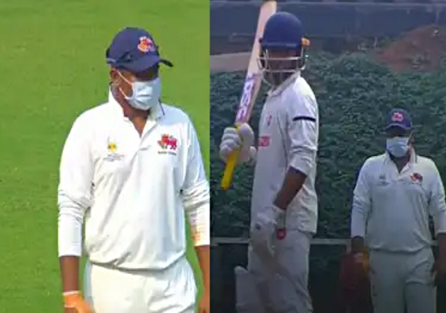 آلودگی میں اضافہ ہونے کی وجہ سے ممبئی کے بیٹر سرفراز خان، مشیر خان اور ہمانشو سنگھ نے ماسک پہن کر میچ میں شرکت کی۔