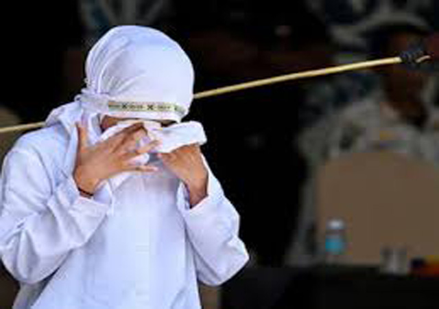 انڈونیشیا کے صوبہ آچے میں نوجوان جوڑے کو کوڑے مارنے کی سزا ایک بڑے عوامی اجتماع کے سامنے اسٹیج پر دی گئی تاکہ لوگ عبرت پکڑیں۔