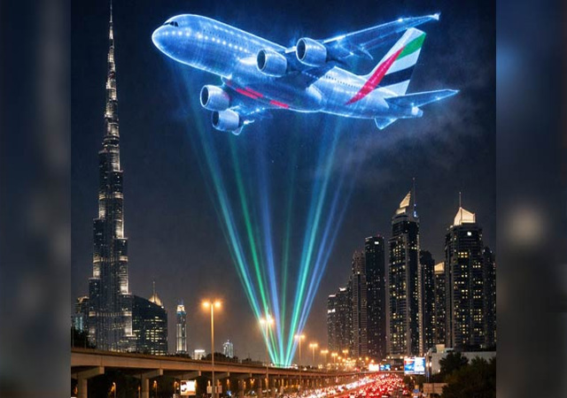 دبئی:دبئی میں بزنس بے اور ڈاؤن ٹاؤن کے اطراف آسمان پر ایک منفرد ہولوگرام مظاہرے نے شہریوں کی توجہ اپنی جانب مبذول کر لی، جہاں لیزر ٹیکنالوجی کے ذریعے فضا میں ایک دیوقامت طیارے کا منظر پیش کیا گیا جو بغیر کسی اسکرین کے آسمان میں تیرتا محسوس ہو رہا تھا۔