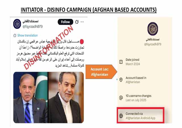 پاکستان کے خلاف مصنوعی ایرانی ردعمل افغانستان سے آپریٹ اکاؤنٹس کے ذریعے پھیلایا گیا، افغان نیٹ ورک کو بطور proliferators استعمال کرنے کا ثبوت بھی سامنے آگیا ہے، بھارتی ڈس انفارمیشن حملے کا مقصد امن کوششوں کے کلیدی کردار پاکستان کو متنازعہ بنانا تھا۔