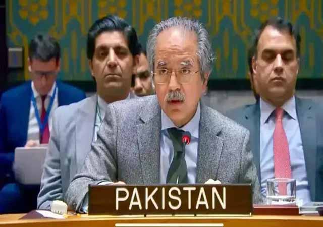 نیویارک:اقوام متحدہ میں پاکستان کے مستقل مندوب عاصم افتخار نے کہا ہے کہ پاکستان آبنائے ہرمز میں معمول کی بحری نقل و حرکت کی بحالی کا مطالبہ کرتا ہے، آبنائے ہرمز کی صورتحال دنیا بھر کے ممالک بشمول پاکستان پر منفی اثرات مرتب کر رہی ہے،پاکستانی عوام بھی اس سے متاثر ہو رہے ہیں۔