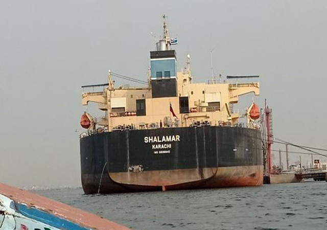 پورٹ ذرائع کے مطابق شالامار جہاز یواےای سے خام تیل پاکستان لایا ہے۔