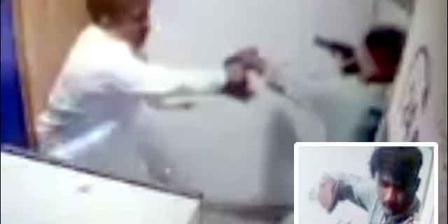 واردات کی سی سی ٹی وی فوٹیج میں دیکھا جا سکتا ہے کہ شاہراہ پاکستان پر واقع بینک کے اے ٹی ایم بوتھ میں شہری مشین سے رقم نکال رہا ہے کہ اس دوران وہ باہر سے ہونے والی آہٹ پر چونک گیا اور فوراً اپنا پستول نکال کر لوڈ کرلیا۔