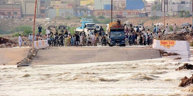 کورنگی کاز وے کے دونوں ٹریک بارش کا پانی آنے سے ٹریفک کے لیے آج بھی بند ہیں۔