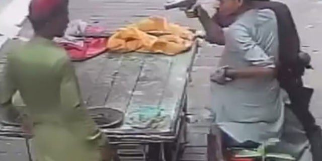 موٹرسائیکل پر عقب میں بیٹھا ہوا ڈاکو کباڑیے سے نقدی طلب کرتا ہے جس پر وہ اپنے کرتے کی جیب سے نقدی نکال کر اسے تھما دیتا ہے جس کے بعد ڈاکو کباڑیے کو اسلحہ دکھا کر موقع سے فرار ہو جاتے ہیں۔