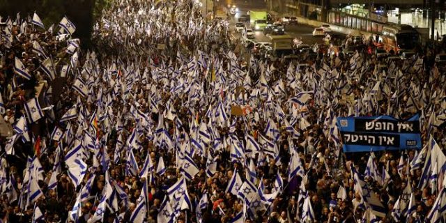 اسرائیلی دارالحکومت تل ابیب کی سڑکیں اور گلیاں آج مظاہرین سے بھر گئیں۔ جنھوں نے وزیراعظم نیتن یاہو کے خلاف شدید نعرے بازی کی۔ مظاہرے میں مخالف جماعتوں پر کریک ڈاؤن اور غزہ میں جنگ بندی کا مطالبہ بھی کیا گیا۔